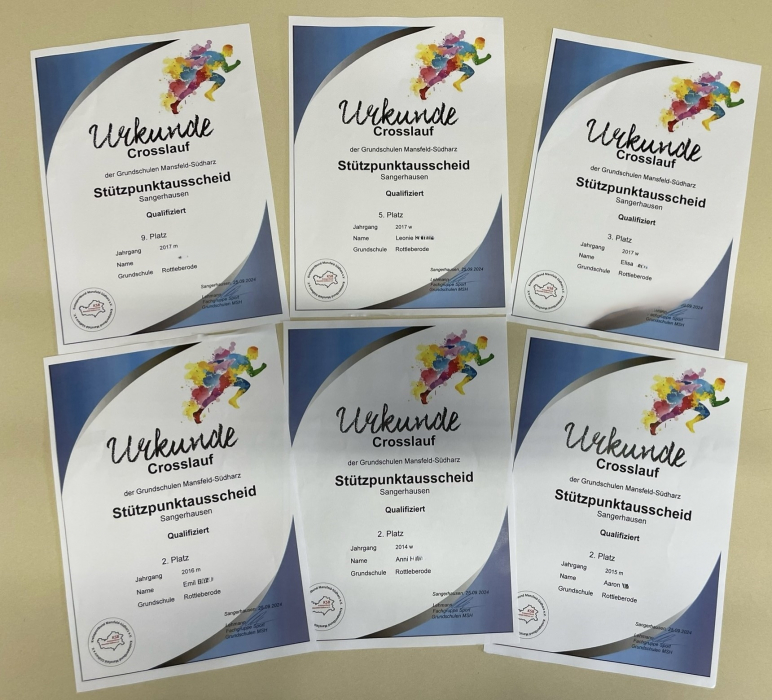 Am 25. September 2024 fand in Sangerhausen unter regnerischen Bedingungen der Vorausscheid zum Crosslauf statt. Trotz des schlechten Wetters starteten neun mutige Kinder voller Enthusiasmus. Nach einem spannenden und herausfordernden Rennen qualifizierten sich sechs von ihnen für die nächste Runde. Die Veranstaltung zeigte den beeindruckenden Einsatz und die Ausdauer der jungen Athleten, die sich von den widrigen Bedingungen nicht entmutigen ließen und mit beeindruckender Leistung glänzten.